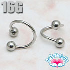 16ゲージのスパイラルバーベル。ボールの直径は4mm。内径は8mmと10mm。サージカルステンレス製のバーがツイストしたスパイラルバーベルです。